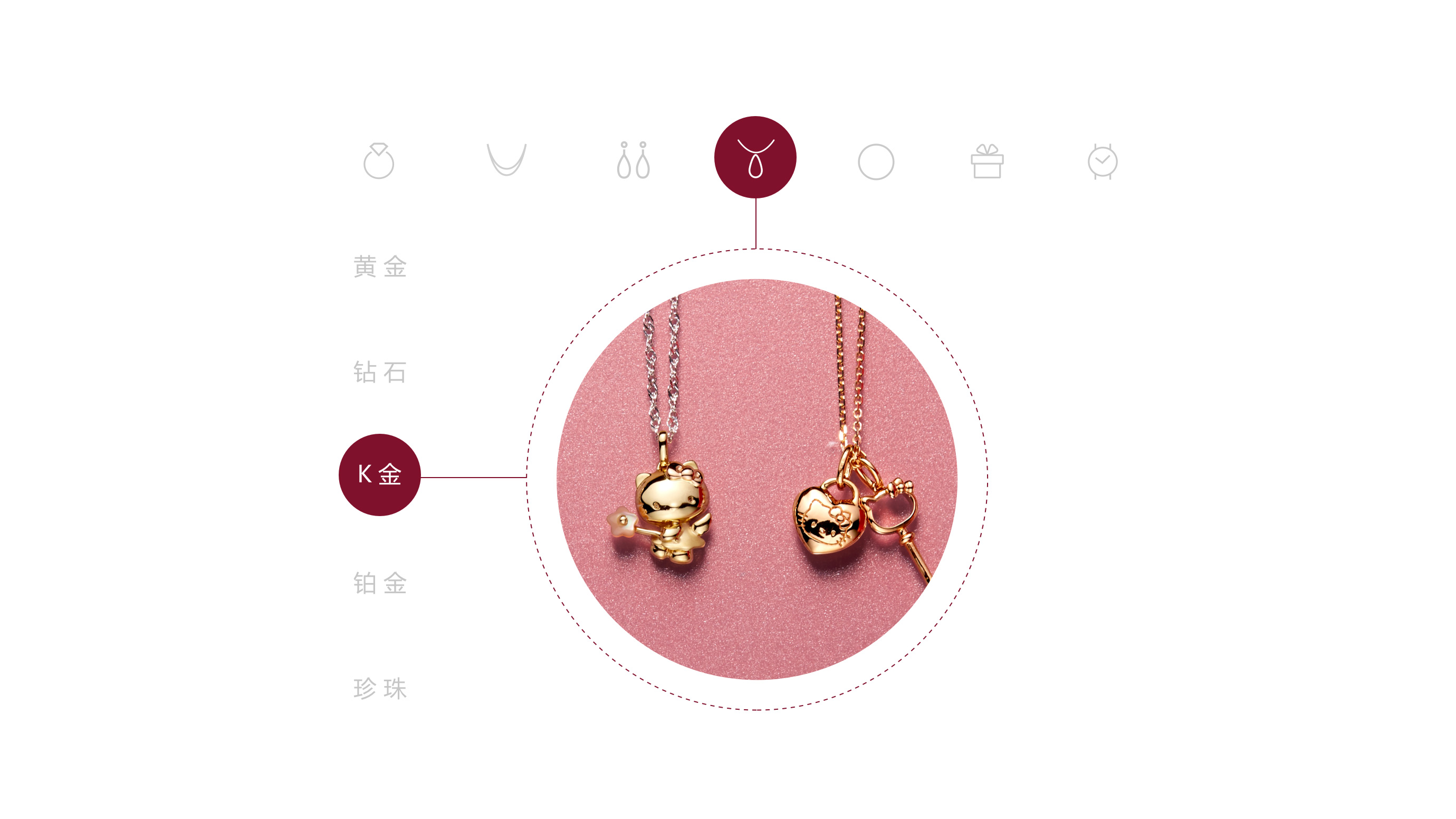 周大福电商网站的产品种类非常多,用户经常不知道周大福还销售那些品类,因此我们采用矩阵式的设计,让各种产品都能一目了然。
