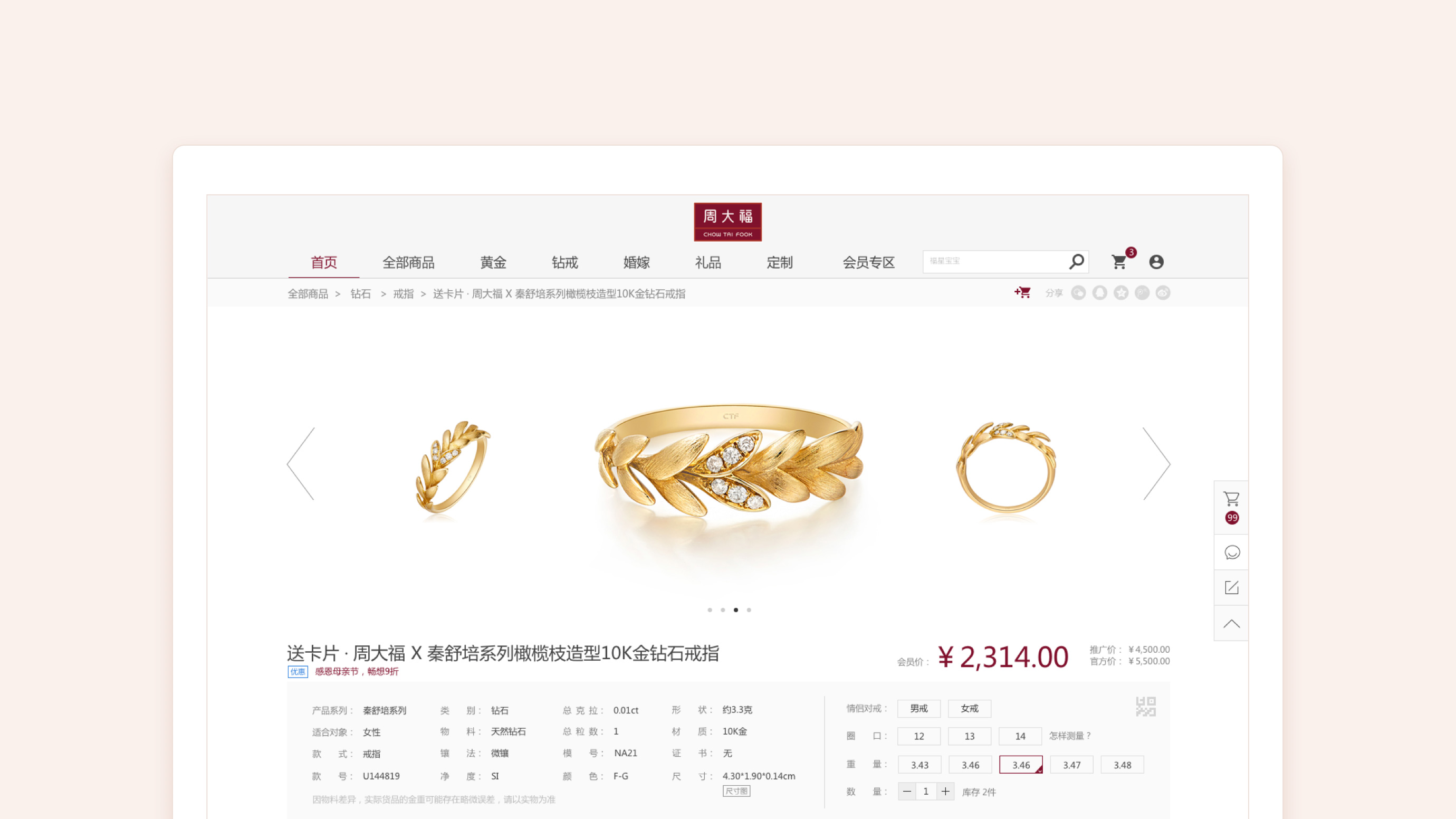TUYI 团队充分考虑到珠宝产品的特殊性,从珠宝顾客信息和视觉体验需求的角度,设计了珠宝产品详情页的大气体验。