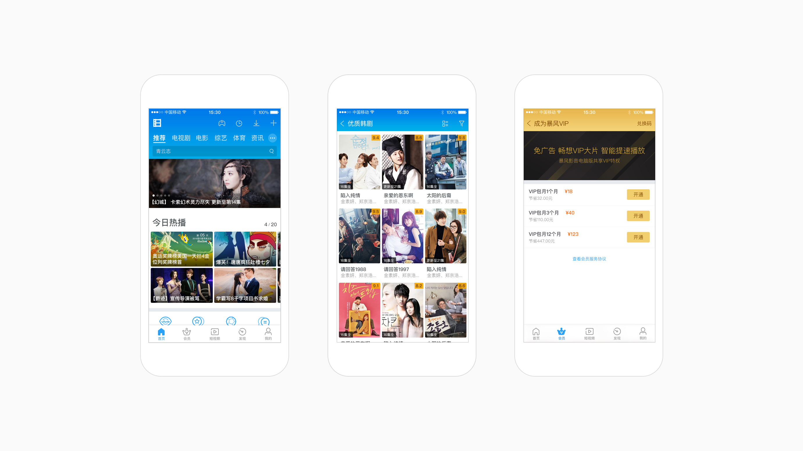 随着暴风影音产品线的不断扩大,各产品端的体验在各自发展中并没有形成统一的体验规则,TUYI 对暴风全平台产品(Pc,Web,移动,Pad)进行了整体的UI规范设计,使得用户能够得到一致的的体验感受,提升了产品的体验效率。