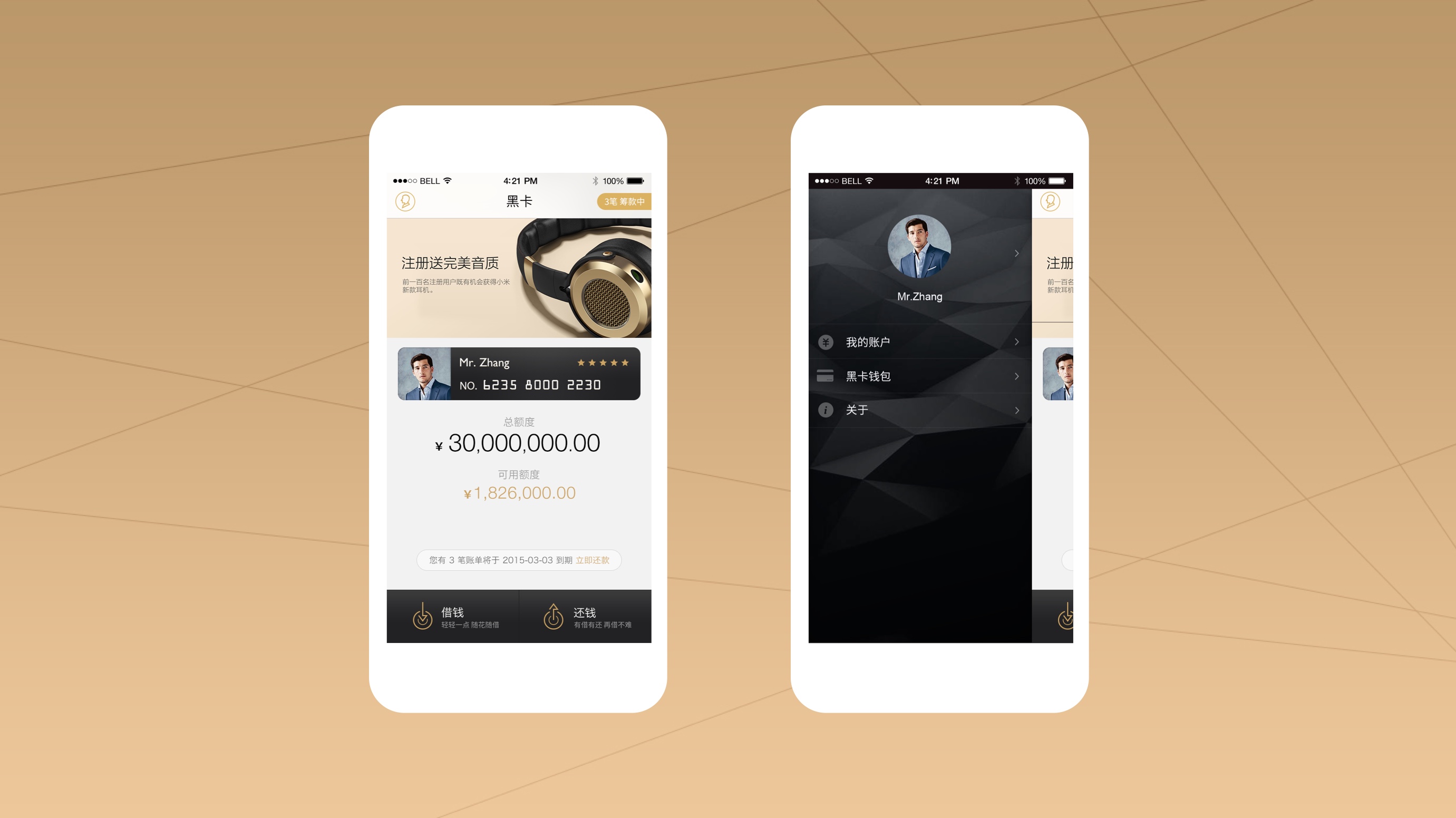 黑卡是人人友信集团内部全新打造的个人金融服务平台,黑卡V1.0产品主要面对高端消费人群,用户可以通过名人授信进行品质生活消费,是对互联网金融消费形式的一次创新探索。TUYI设计的挑战在于设计一款,简洁,高端,具有品质生活格调的产品。
