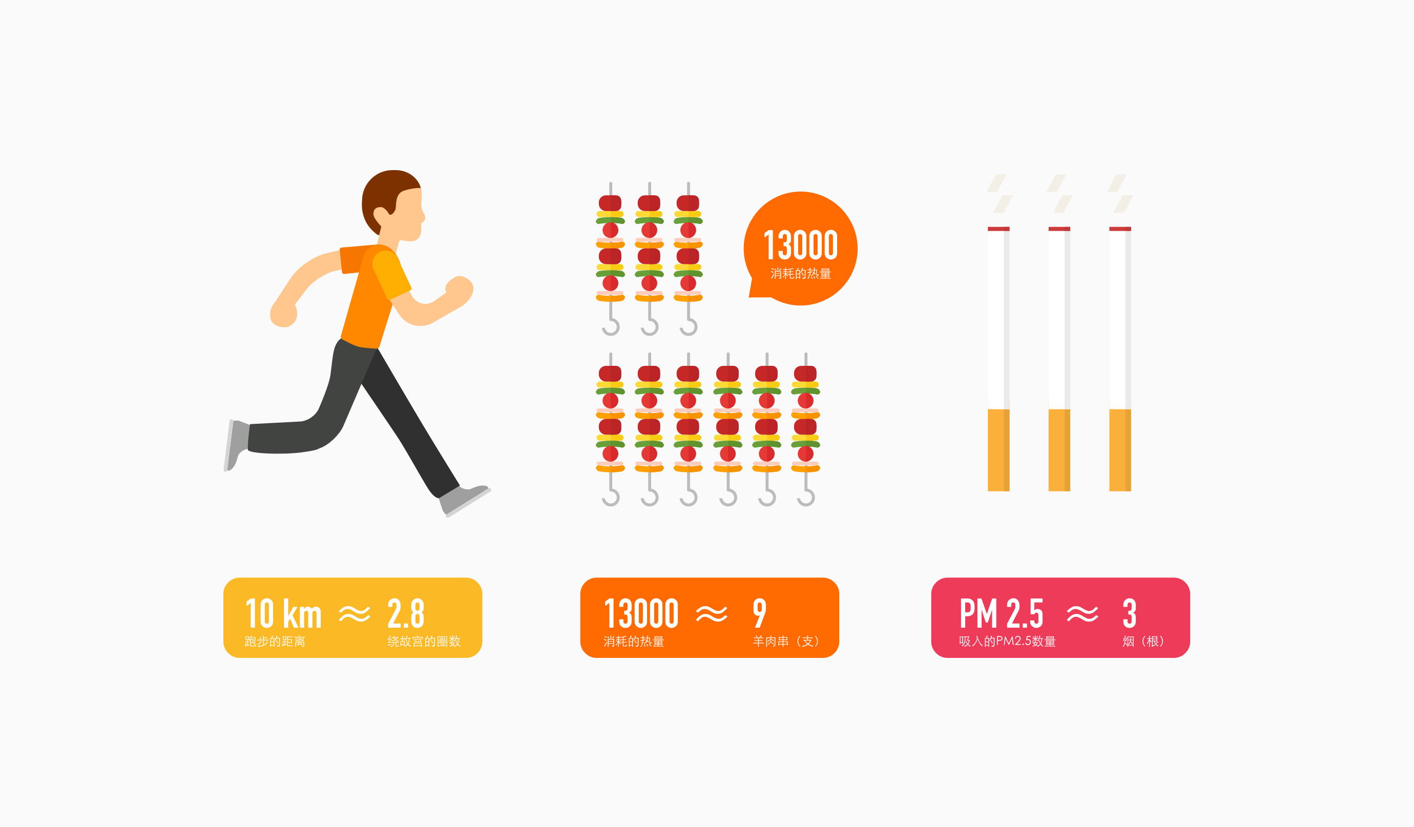 “跑步 10 公里距离”约等于绕故宫 2.8 圈,消耗的 13000 卡热量约等于 9 支羊肉串, 吸入的 PM2.5 数量可能等于 3 根烟, “我今天的跑步距离在好友中排第几?”,TUYI 团队将这些专业的语言转化为用户可以理解的“数据结论”,而正是这些数据结论触发了用户的情感体验,使他们可以更好的享受运动的乐趣。