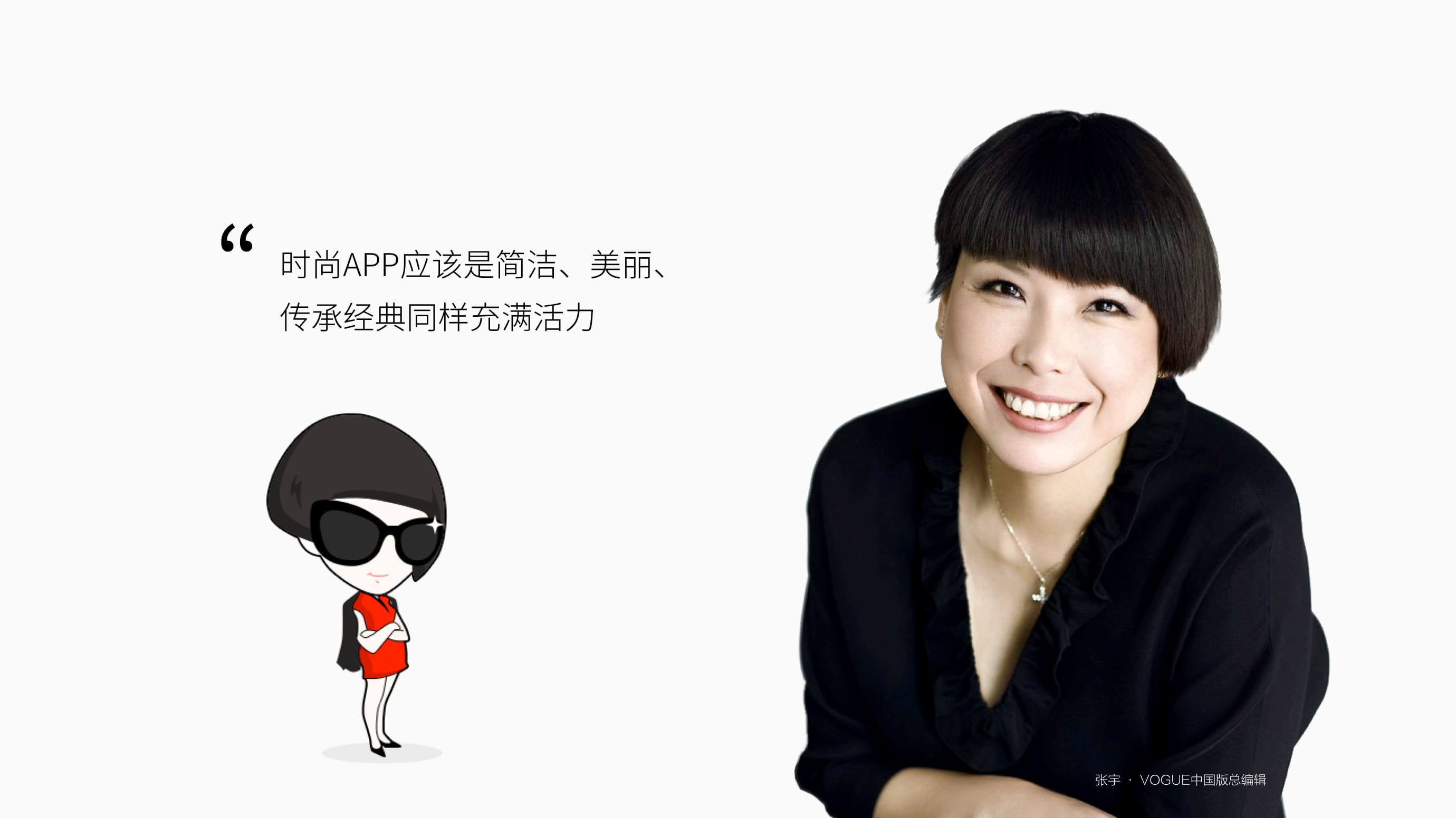 为了让产品具有鲜活有趣的互动媒体体验,TUYI将时尚大咖Vogue中国主编的形象设计成了“Miss Vougue”这个动漫形象,用户可以向她提问,从而形成有趣的用户体验。