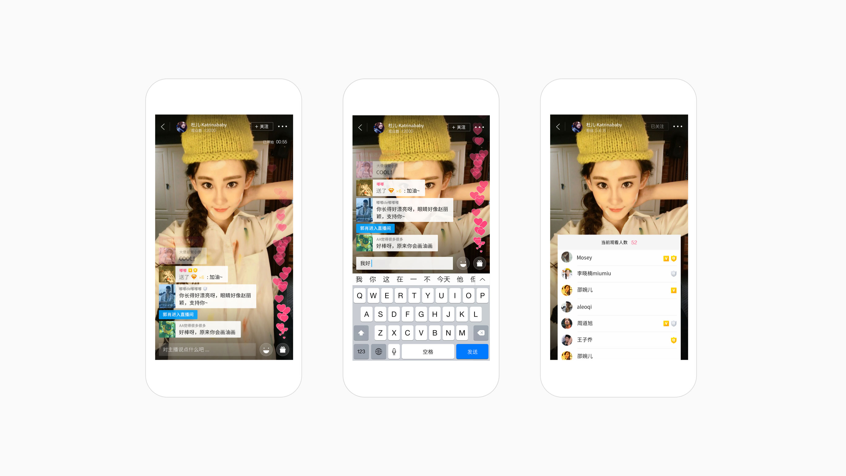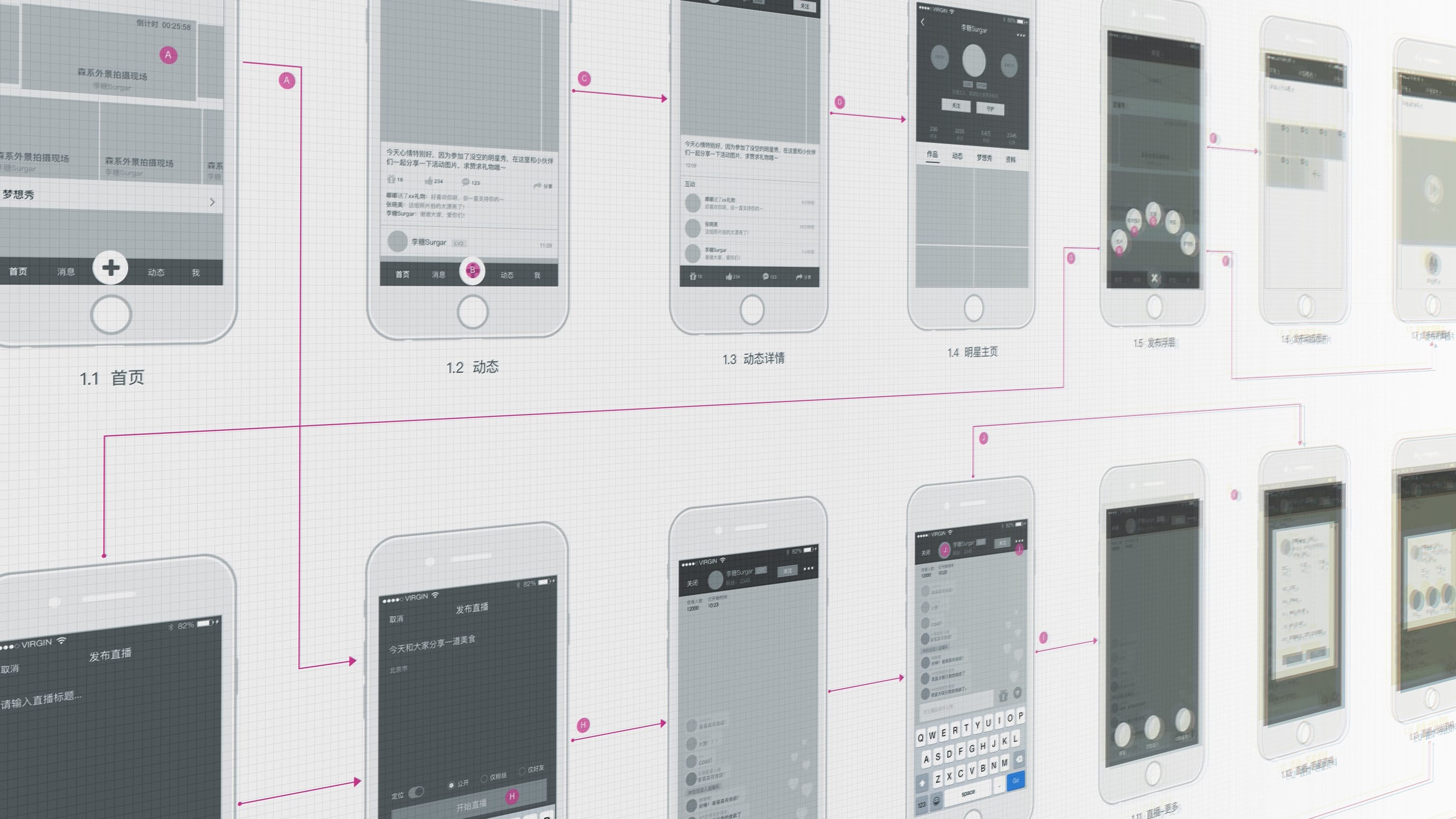 我们通过分析粉丝追星过程的行为来进行设计,例如粉丝可以关注明星的心路历程,来产生持续的互动,在直播过程中通过有趣的互动体验设计来让粉丝和艺人进行更加真切而激动人心的互动。