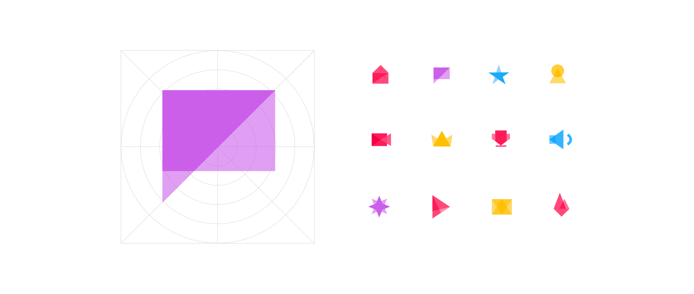 如何使得整个界面的视觉体验具有娱乐性而又保持时尚的格调?我们通过反复的探索,设计出了一种基于时尚的基本几何元素的视觉元素系统,从而构建时尚现代的视觉印象。
